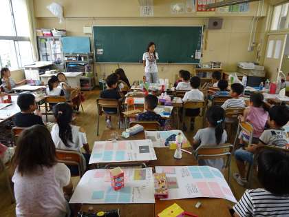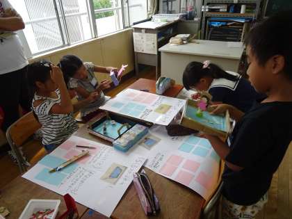 2年生の生活科の学習で、おもちゃ作りをしています。