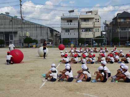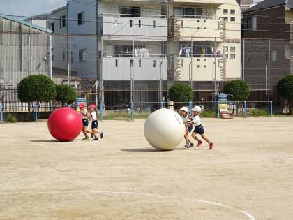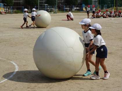 上手に大玉を転がそうとペアの友達と協力しながら、子ども達はとても楽しそうに活動していました。
