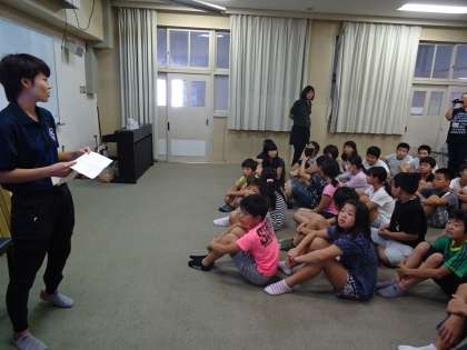 子ども達はパラリンピックについて教えてもらったり、アーチェリーについて教えてもらったりと、とても興味津々に講師の先生の話を聞いていました。