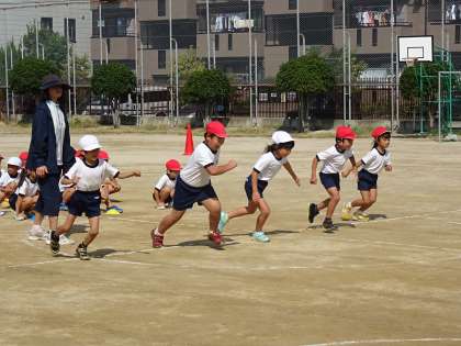 1年生は運動会でおこなう個人走(かけっこ)の練習をしました。