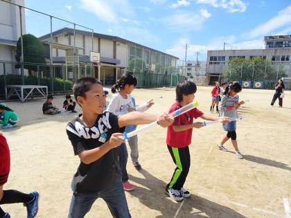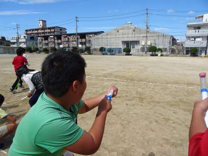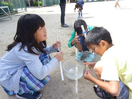 今日は空気鉄砲を使って、実験をしました。「どうやったら玉を遠くに飛ばせるかな」など、子ども達は楽しみながらいろいろな方法を考えて実験をしていました。
