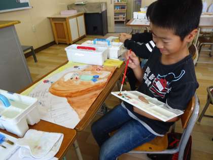 3年生の図工科の学習では、運動会の思い出をテーマにして絵を描いています。