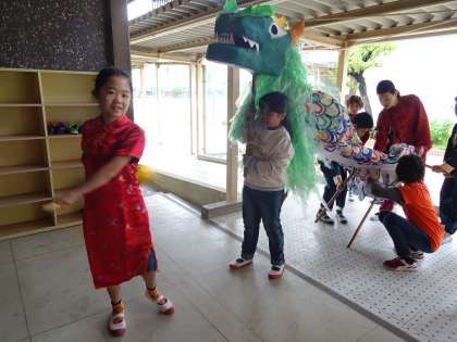シャンリィクィの子ども達が龍をもって登場すると、会場からは大きな歓声と拍手がおくられていました。