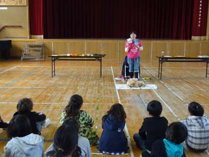 どんな訓練をして盲導犬になるのか、盲導犬への指示の仕方や扱いについてなど、いろいろなことを教えてもらい、子ども達はとても真剣に聞いて盲導犬を見ていました。