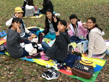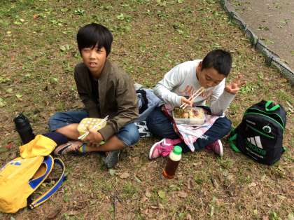 見学の後、大阪城の広場に移動してお弁当を食べました。