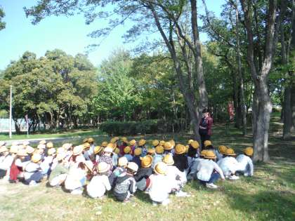 1年生は生活科の秋見つけの学習で久宝寺緑地公園にどんぐりをひろいに行きました。