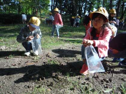 たくさんのどんぐりをひろい集め、子ども達は時間いっぱいまで夢中になってどんぐりをひろっていました。