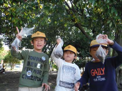 一人ひとりの袋には、たくさんのどんぐりが集められ子ども達はとても喜んでいました。