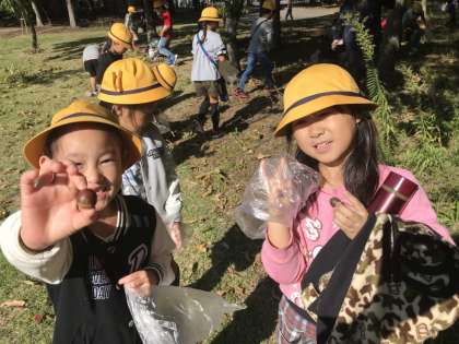 昨日の1年生の同じく、子ども達は夢中になってどんぐりをひろい、時間になるまでたくさんのどんぐりをひろい集めていました。