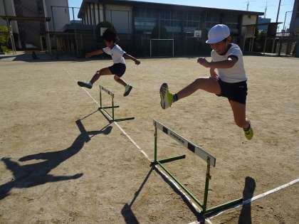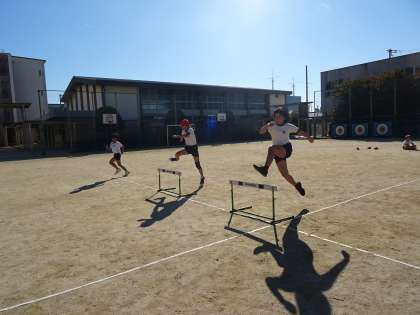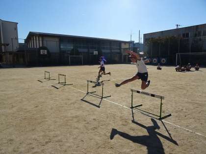 5年生の体育は、ハードル走の学習をしています。