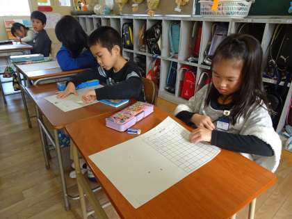 感想を書きながら、影絵の作り方をしている子ども達の姿も見られました。
