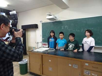 各クラブでポーズを決めたり、黒板に○○クラブと書いたりして写真撮影に臨んでいました。同じクラブの4年生と5年生が見守る中、写真撮影は順調におこなわれました。