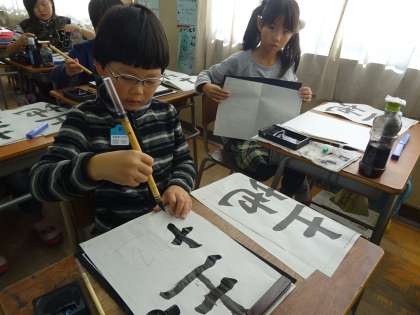「とめ」「はね」「はらい」などを意識しながら、子ども達は一文字ずつ丁寧に書いていました。自分の納得いく字が書けるようにと、最後まで集中力をとぎらせることなく取り組んでいました。