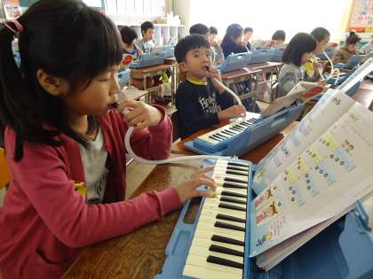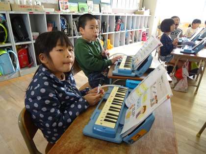 1年生の音楽の学習で、鍵盤ハーモニカの練習をしました。