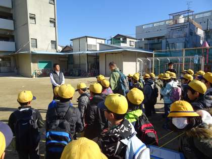 コリアタウンに着いて、まずはじめに大阪朝鮮第4初級学校に行きました。初級学校の教頭先生に初級学校のことや、そこで学ぶ子ども達のことなどをお話をしてもらいました。また、自分のルーツを大事にすることや共生していくことの大切さなども話していただきました。短い時間ではありましたがたくさんことを教えてもらい、子ども達はメモをしながら真剣に話を聞いていました。