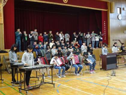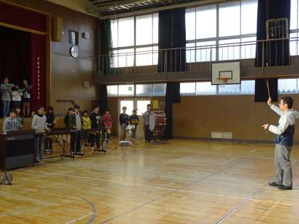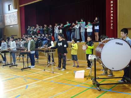 今日は講堂に楽器をならべて練習をしました。いよいよ本番が近付いてきたということもあり、子ども達はこれまで以上に真剣に練習に取り組んでいました。