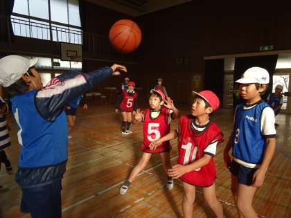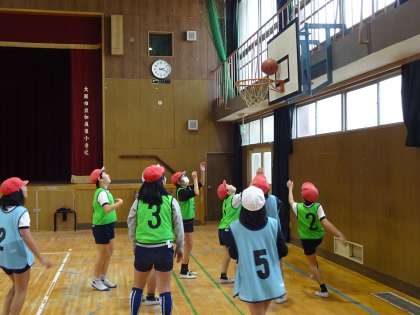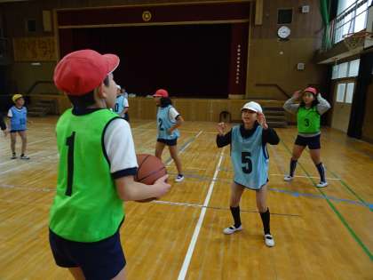声をかけあって攻めたり守ったりし、チームで協力して活動する様子が見られました。子ども達は汗いっぱいになるほど動き回り、夢中になってバスケットボールを楽しんでいました。