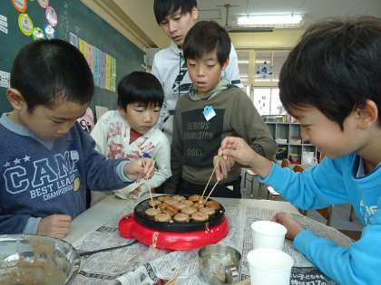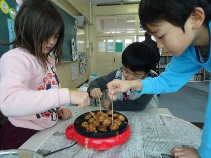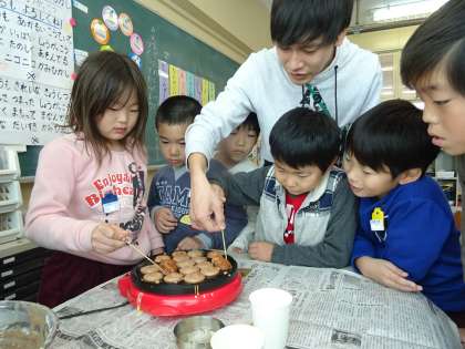 子ども達は上手にカステラをひっくり返して焼いていました。