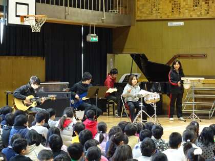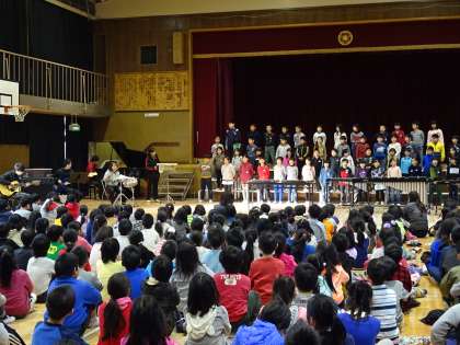 「福笑い」の合唱では、先生たちによる生演奏で子ども達は歌いました。