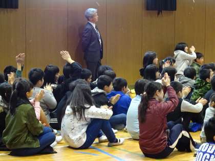 合唱が始まりしばらくすると、3年生の子ども達の歌声と演奏にあわせて会場からは自然と手拍子がおこりました。手拍子とともに3年生の子ども達はとてもいい表情で歌っていました。