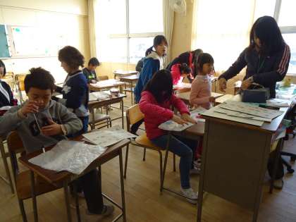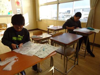 子ども達は凧の形やデザインを考え、とても楽しそうに凧づくりをしていました。