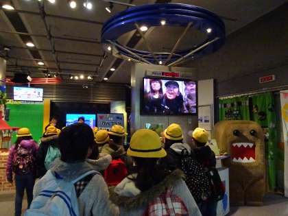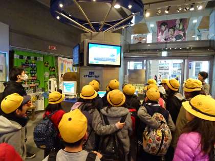 係りの人からテレビ放送についての説明を聞いたあと、体験コーナーでアナウンスをしたり、放送のしくみ(クロマキー)を使った体験をしたりしました。子ども達はとても楽しそうに活動をしていました。