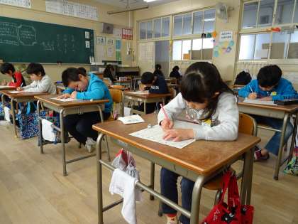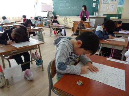 多くの子ども達が今日の漢字王にむけて、漢字の練習をしたり、覚えたりしてテストに臨んでいました。これまでがんばってきたことを発揮しようと、集中してテストをうける子ども達の姿がどの学級でも見られました。