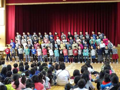 最後に「友だちになるために」の歌を2年生の子ども達は元気よく歌っていました。