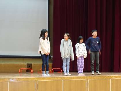 クラブでおこなっている練習を実際にやったり、活動の様子を映像で紹介したりしました。