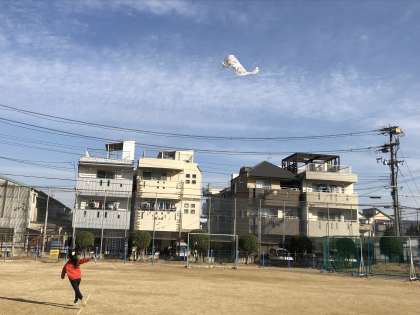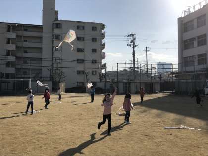 前回よりも上手にたこをあげれるようになった子が増え、子ども達は今日も夢中になって活動をしていました。