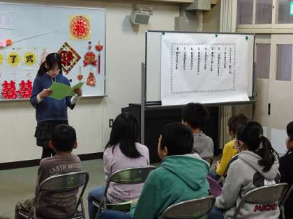 先生たちや老師が見守る中、子ども達は少し緊張しながらもがんばって発表していました。