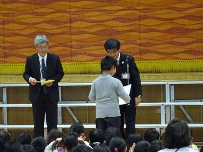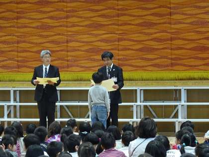 中には「あいさつ隊」として、自主的に正門に立って朝のあいさつをしている子ども達も表彰を受けました。