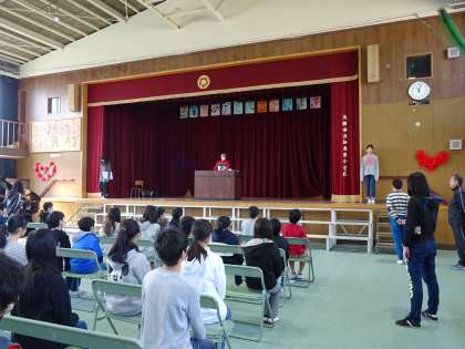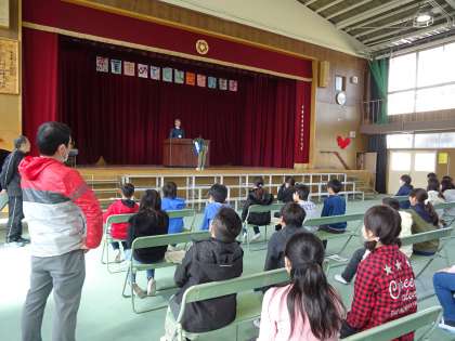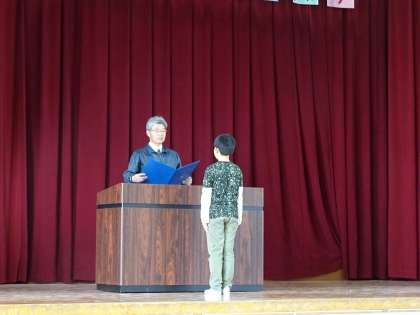 証書をもらうまでの動きや、証書の受け取り方などを確認しました。証書の受け取り方を校長先生が直々に教えてくださり、子ども達は緊張感をもって練習に励んでいました。