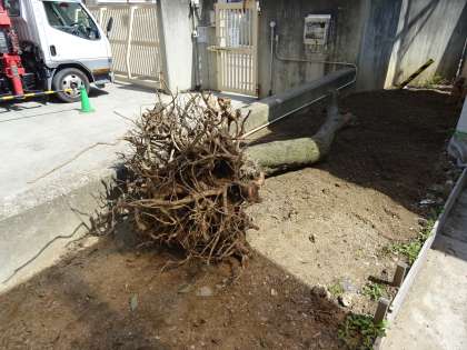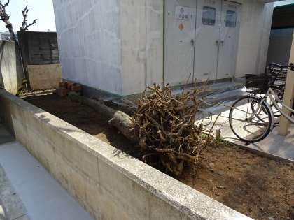 正門付近の木と中庭にある木を抜く作業をしてもらいました。