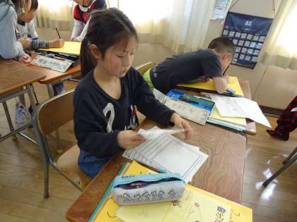 今日も子ども達は「自分探検ブック」を作り上げようと一生懸命に取り組んでいました。