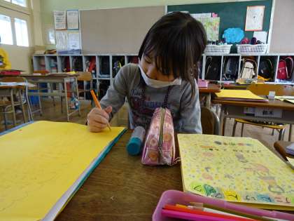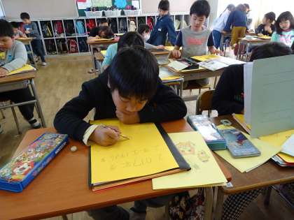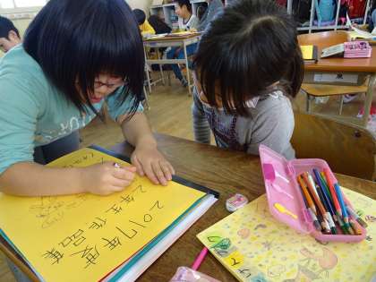 自分探検ブックが出来上がった子ども達は、作品集の表紙作りをしました。