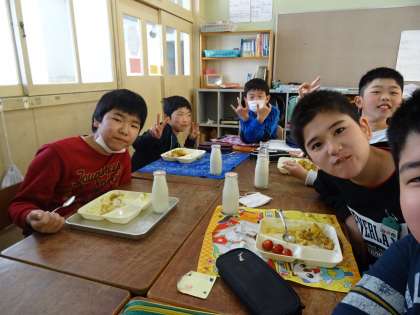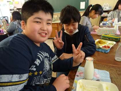 給食時間の合間をぬって、昨日配布してもらった卒業アルバムに先生や友達に寄せ書きを書いてもらう子もいました。