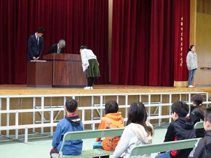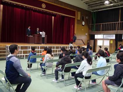 卒業式の予行がおこなれ、本番さながらの緊張感をもって子ども達は予行に臨んでいました。
