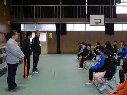 卒業式の予行が終わった後、6年生と5年生の子ども達にむけて、先生方が一言ずつ話をしました。子ども達はどの先生の話も真剣に聞いて、卒業式への気持ちを高めていました。