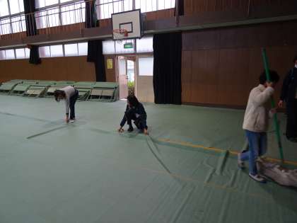 卒業式の準備として、5年生は講堂や教室などの準備と掃除をしました。