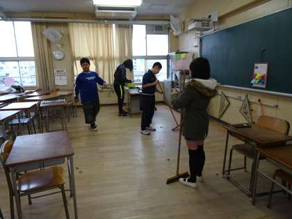 6年生のためにもがんばろうと、役割分担した清掃場所を一人ひとりが一生懸命に掃除していました。
