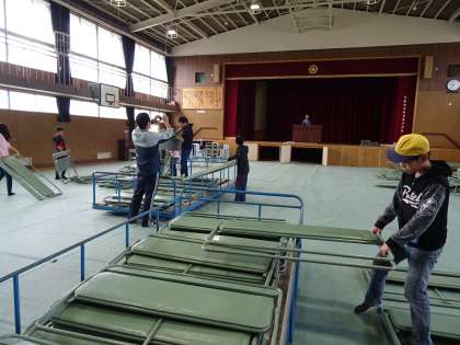 講堂の椅子並べや1年生の教室の掃除など、学校のいたるところで6年生の子ども達は1年生のために一生懸命準備をがんばっていました。