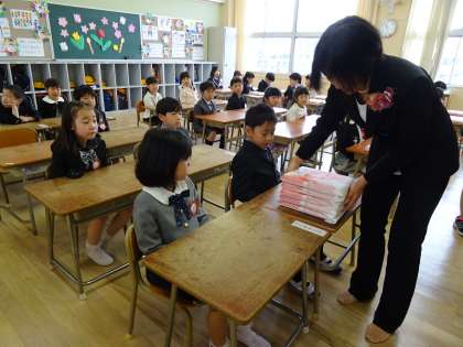 入学式が終わったあと、1年生の教室では教科書などが配られたり、担任や担当の先生達からの話があったりしました。