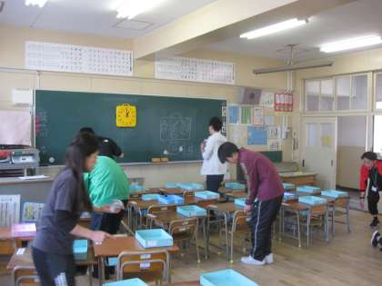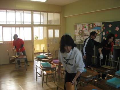 後半はそれぞれのチームで1年生の教室を掃除しました。「15分間でどこまでできるのか。」教師がいろいろな考えを出しあって、きれいな教室になりました。来週からの子どもたちの掃除活動にいかしたいと思います。