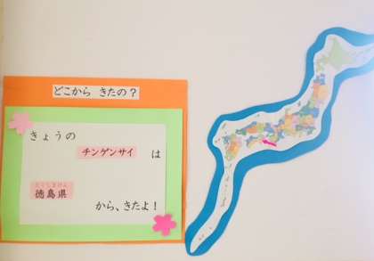 給食に使われる食材の産地が分かる掲示ボードができました。