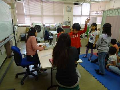 5年生は聴力検査をしました。検査の間、子ども達はとても静かに自分の順番を待っていました。