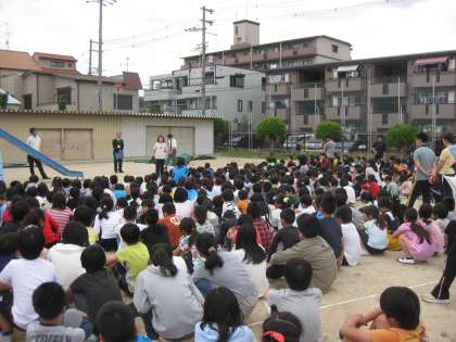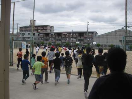 給食室で火災が起こったことを想定して訓練を行いました。「おさない、はしらない、もどらない」をめあてにそれぞれの教室で指導し訓練に臨んでいました。本当に火事が起きた時にどのように行動すべきか、緊張感のある避難訓練でした。