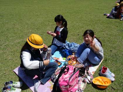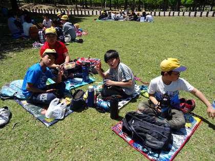 東大寺を見学したあと、芝生広場まで移動してお弁当を食べました。