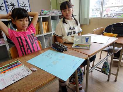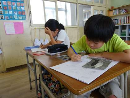 まんがクラブでは、自分の描きたいイラストや写真を見ながら、作品づくりに集中している子ども達の姿が見られました。