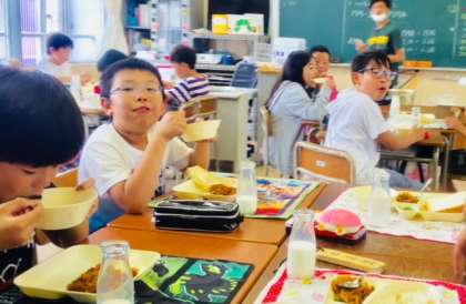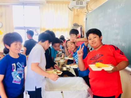おかずを増やしたい子たちが、食缶の周りにたくさん集まっていました。